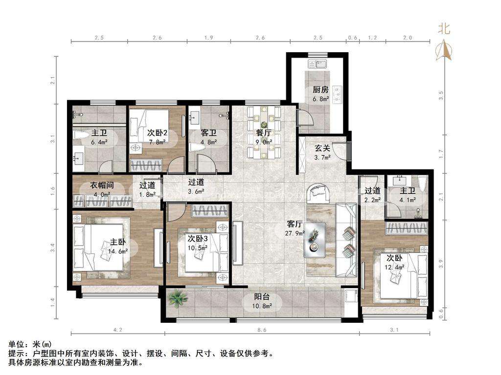 厅室4室2厅3卫2阳台