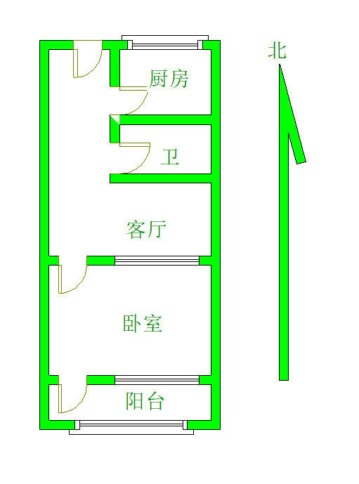 厅室1室1厅1卫1阳台