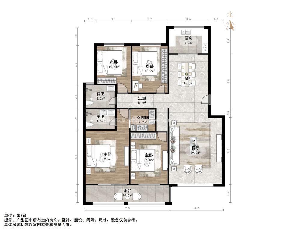 厅室4室2厅2卫1阳台
