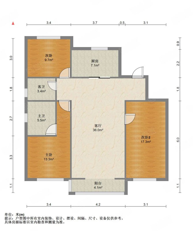 厅室3室2厅2卫1阳台