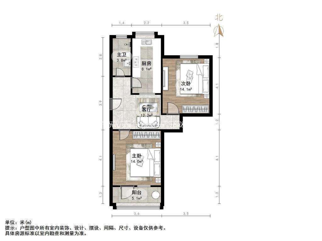 朝向南北 建筑面积75㎡