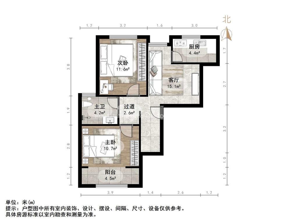 厅室2室1厅1卫1阳台