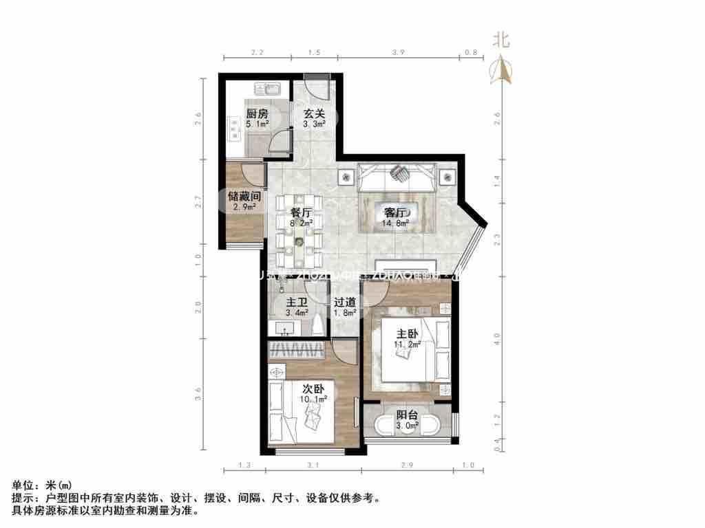 朝向南 建筑面积91.46㎡