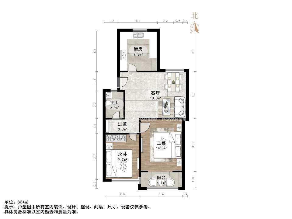 厅室2室1厅1卫1阳台