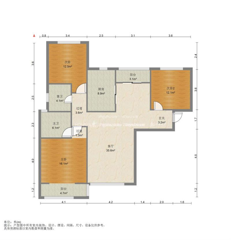 厅室3室2厅2卫1阳台