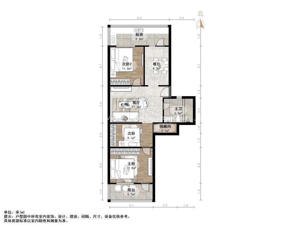 朝向南北 建筑面积86.72㎡