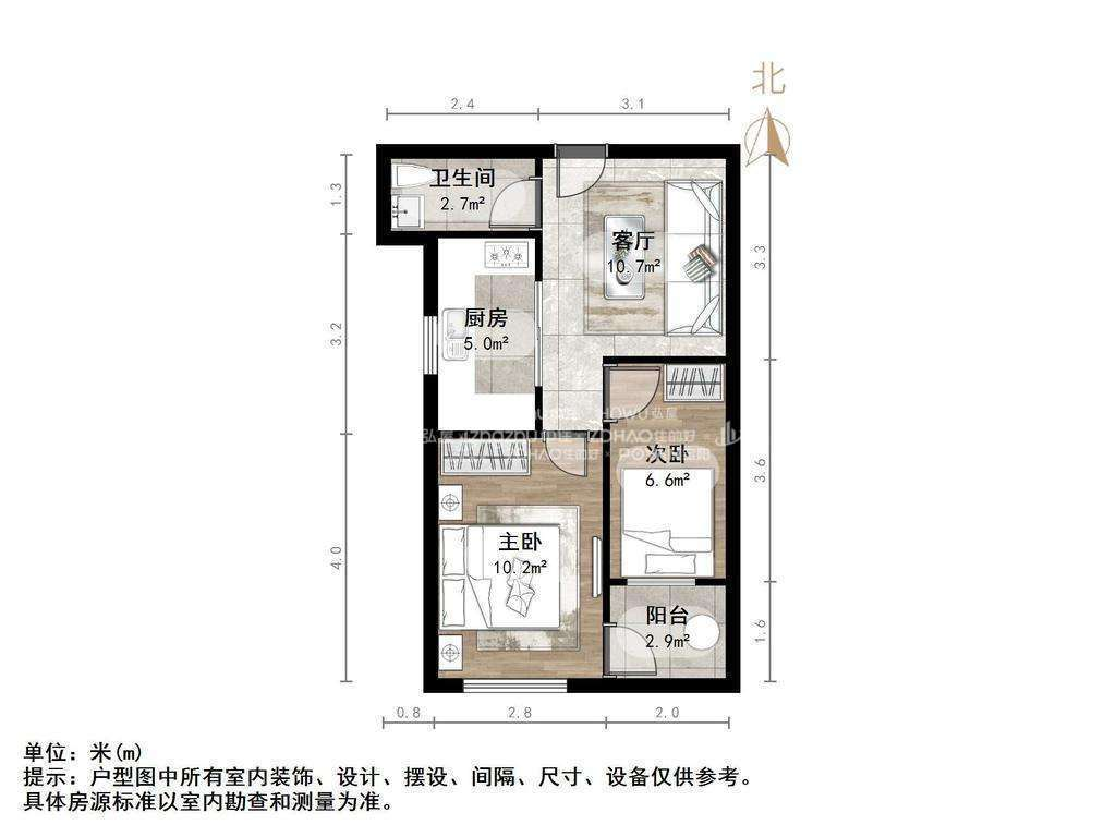 厅室2室1厅1卫1阳台