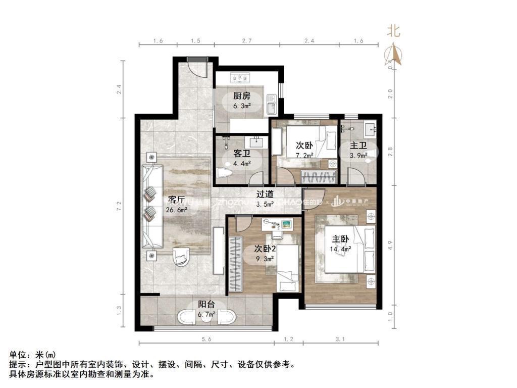 厅室3室2厅2卫1阳台