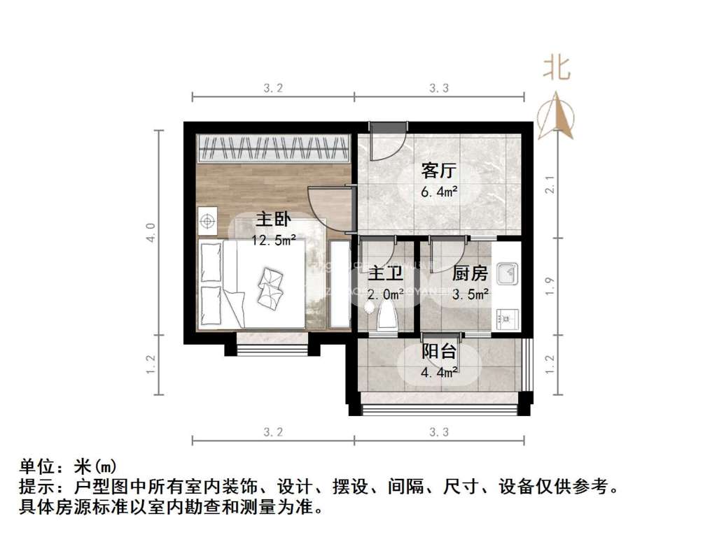 朝向南 建筑面积37.8㎡