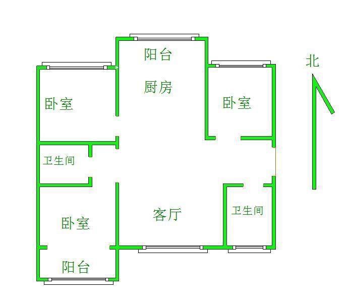 厅室3室2厅1卫1阳台