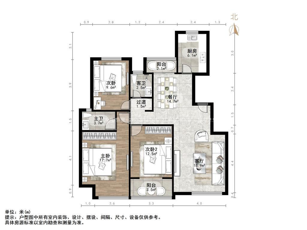 厅室3室2厅2卫2阳台