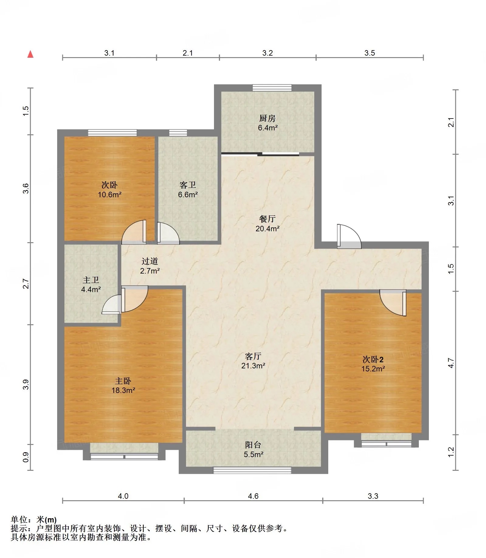厅室3室2厅2卫1阳台