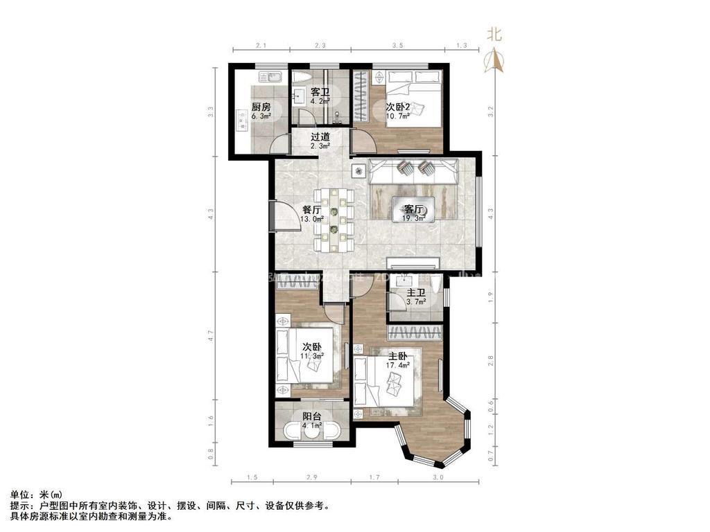 厅室3室2厅2卫1阳台