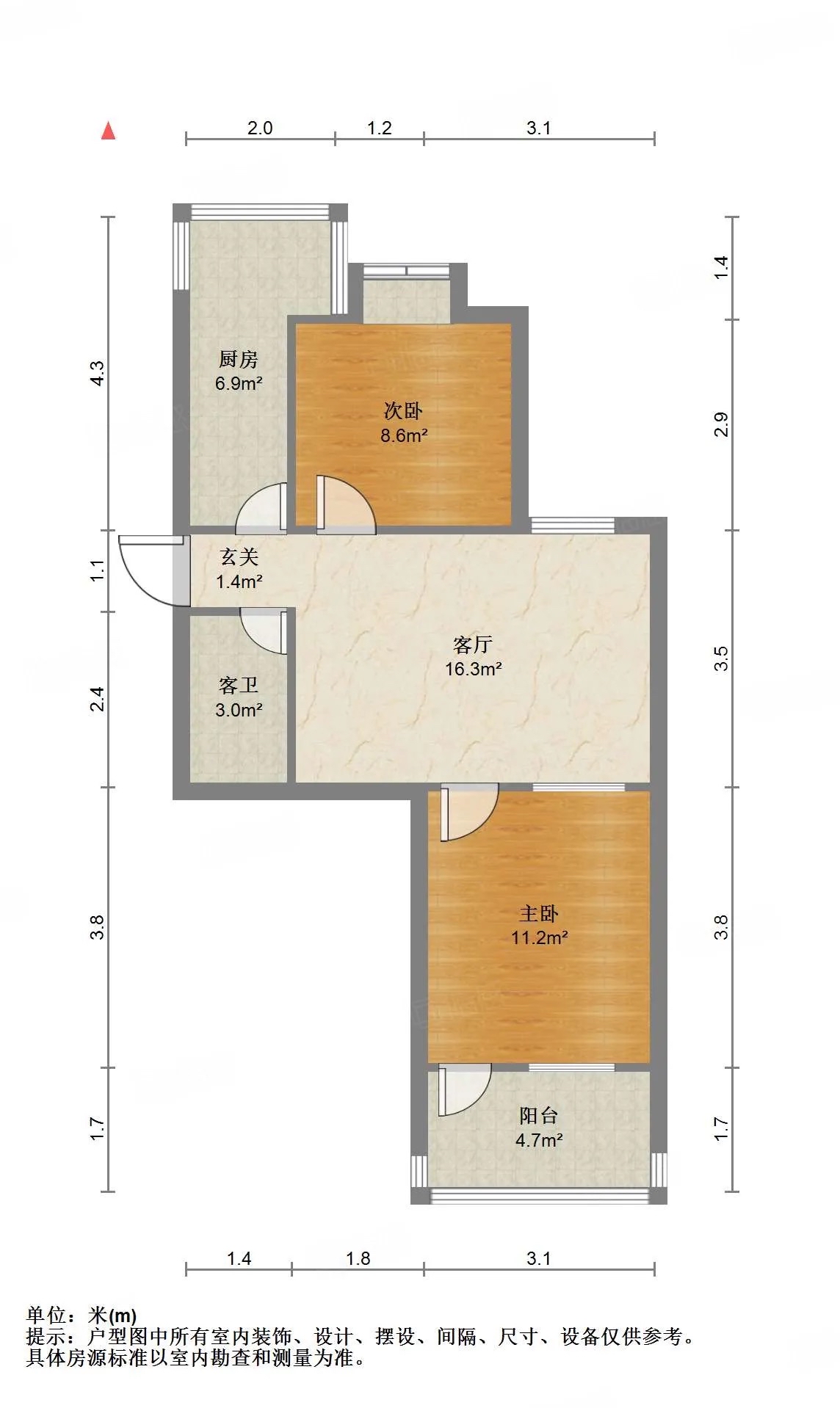 厅室2室1厅1卫1阳台