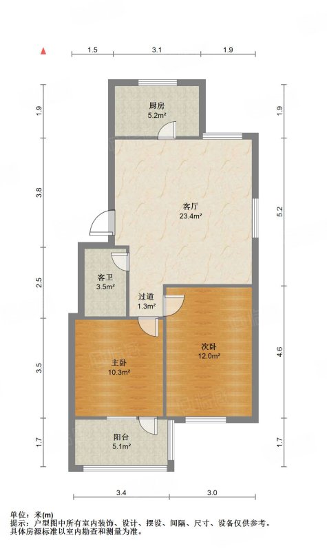 厅室2室1厅1卫1阳台