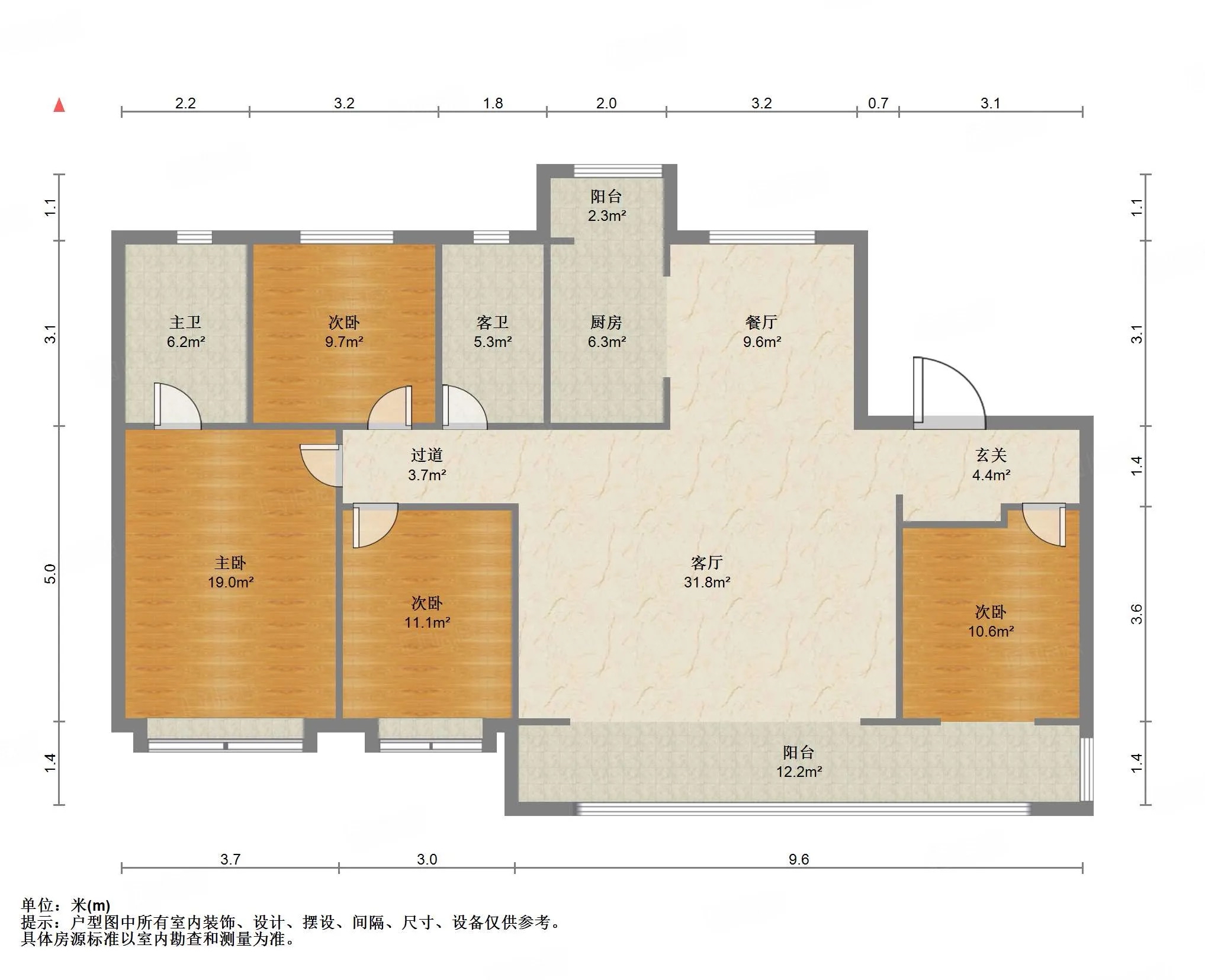 厅室4室2厅2卫1阳台