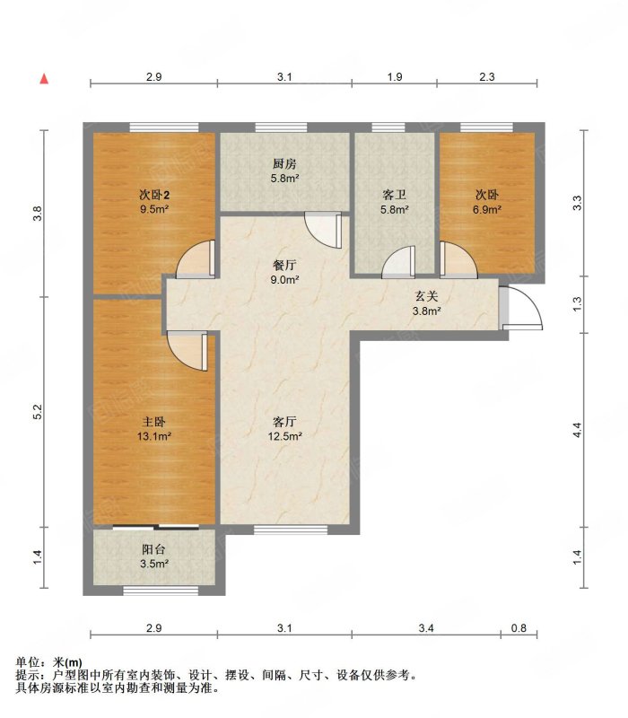 厅室3室2厅1卫1阳台
