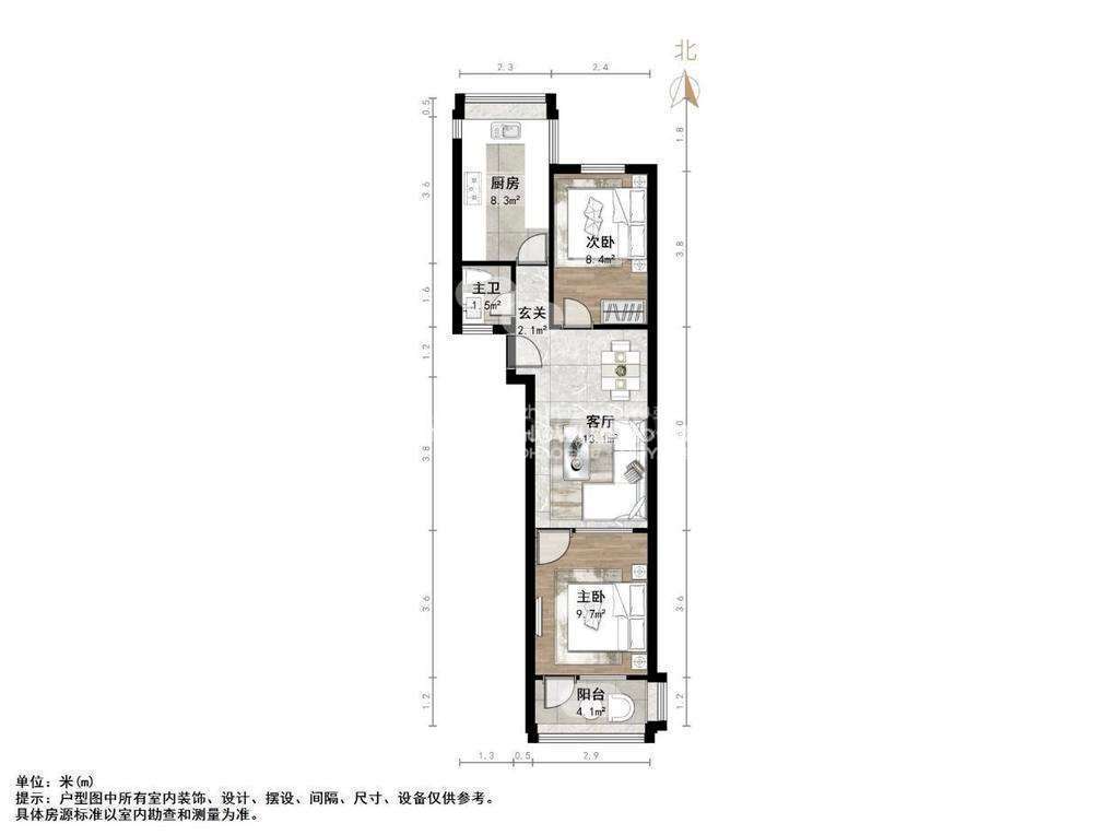 朝向南北 建筑面积57.7㎡