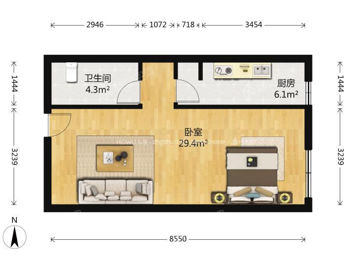 厅室1室1厅1卫1阳台