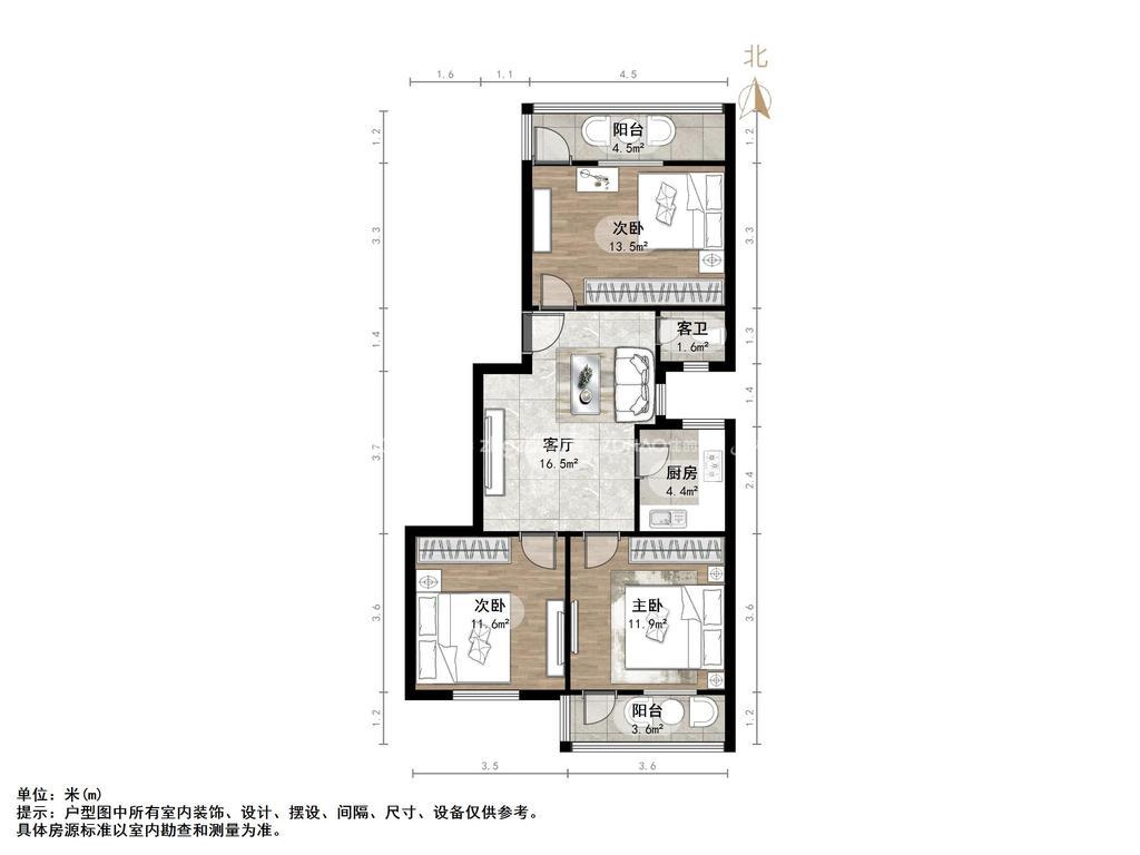 厅室3室1厅1卫1阳台