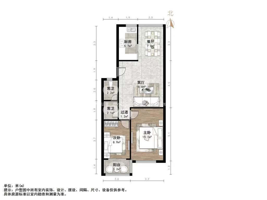 厅室2室2厅1卫1阳台