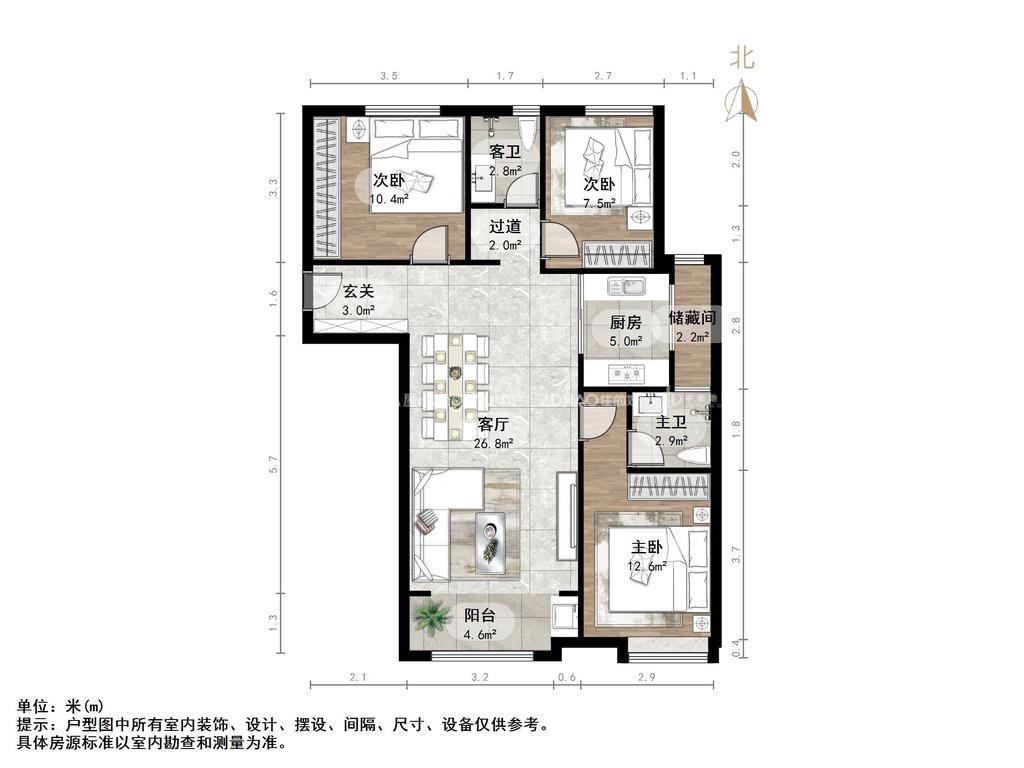 朝向南北 建筑面积125㎡