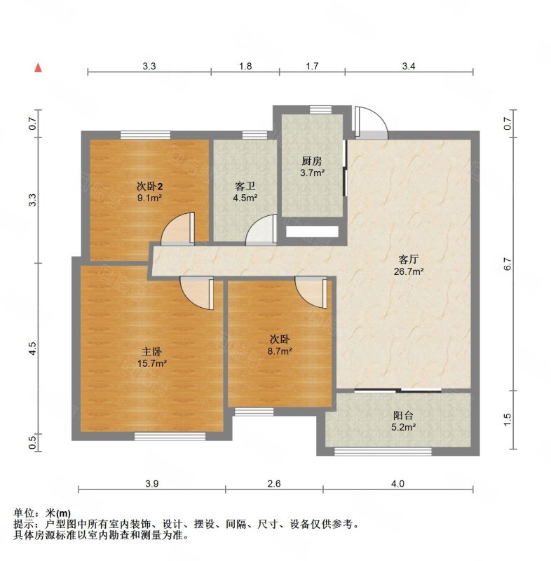 厅室3室2厅1卫1阳台