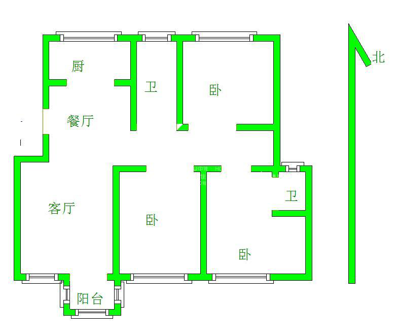 厅室3室2厅1卫1阳台
