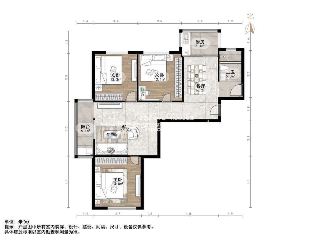 朝向南北 建筑面积123.4㎡