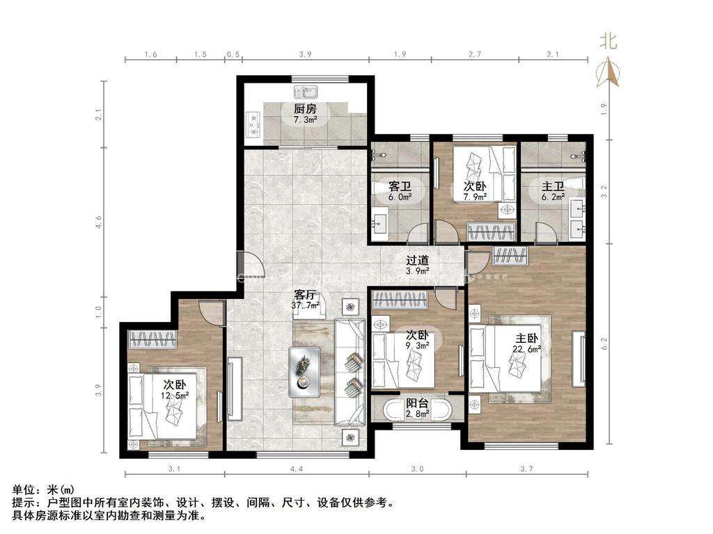 厅室4室2厅2卫1阳台