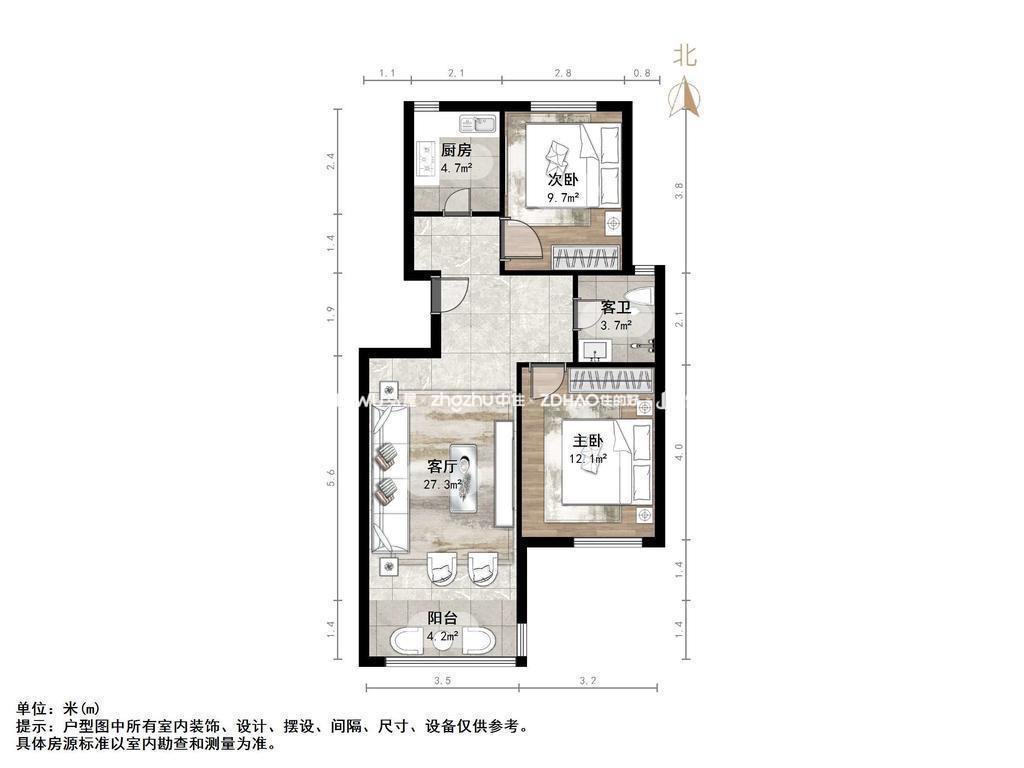 朝向南北 建筑面积95㎡