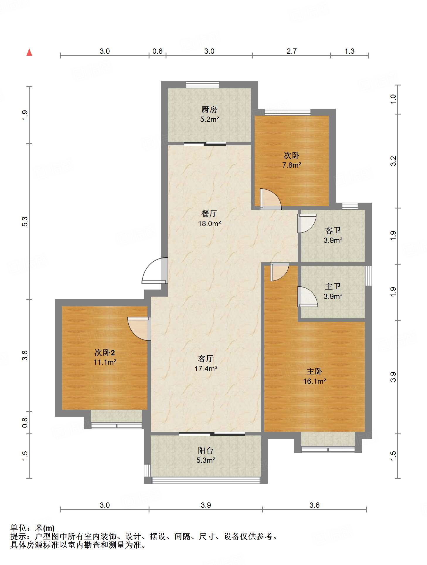 厅室3室2厅2卫1阳台