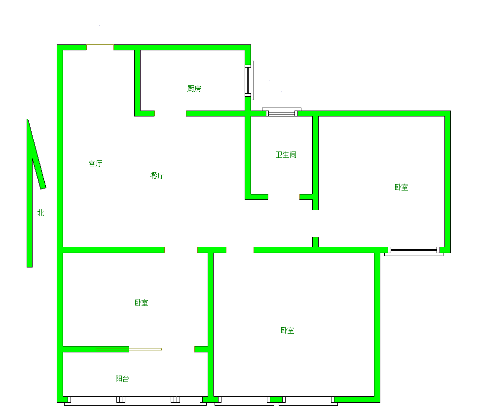 厅室3室1厅1卫1阳台