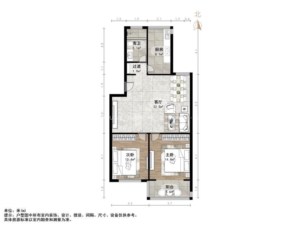 朝向南北 建筑面积97㎡