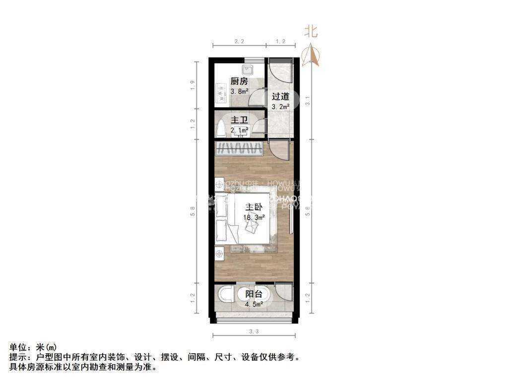 厅室1室1厅1卫1阳台