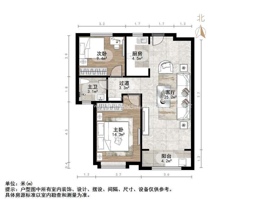 朝向南北 建筑面积82.27㎡