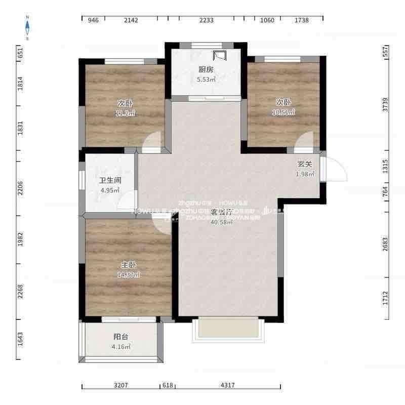 厅室3室2厅2卫1阳台