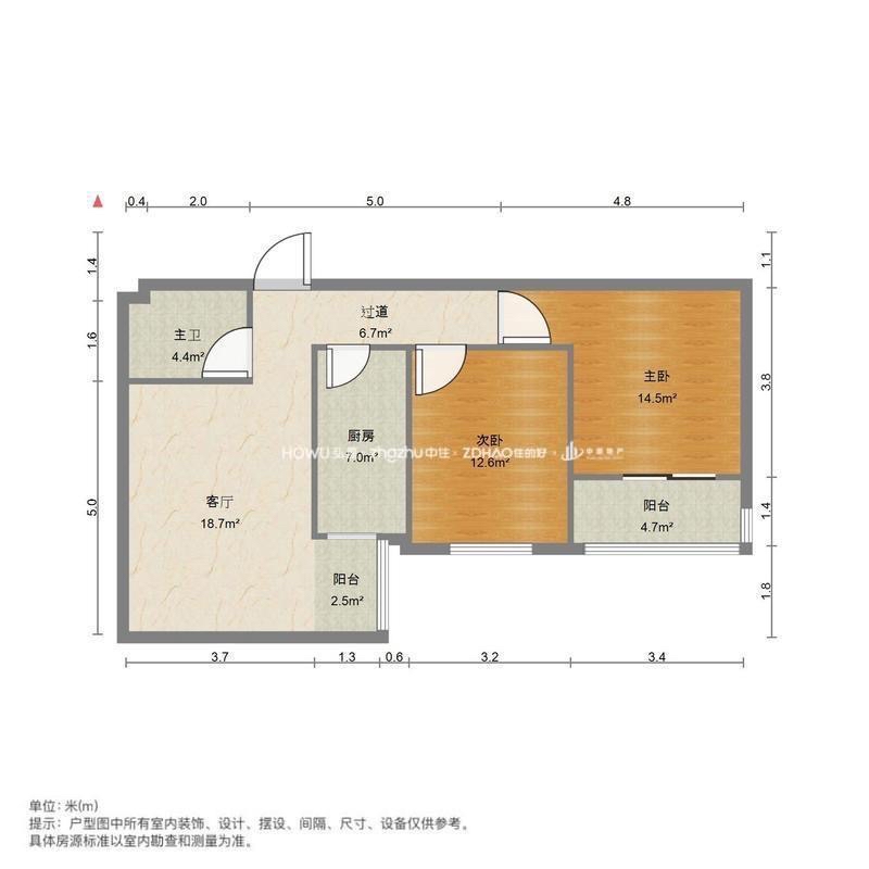 厅室2室1厅1卫1阳台