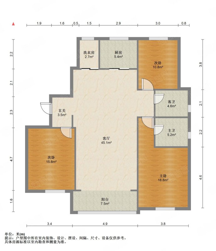 厅室3室2厅2卫1阳台