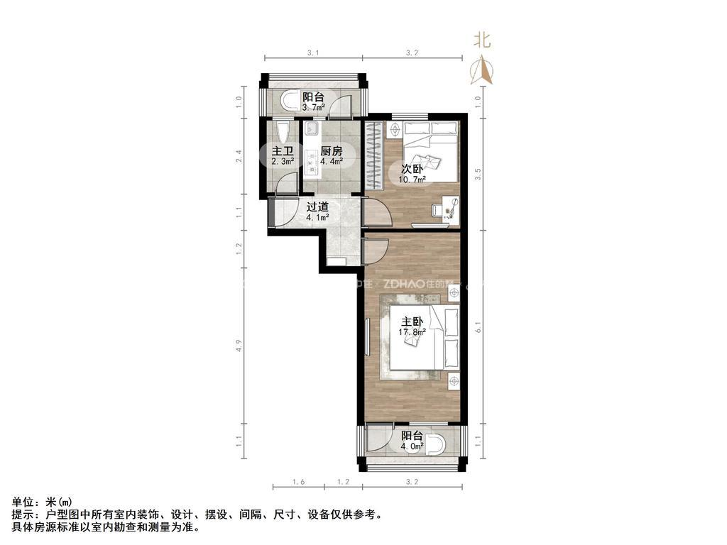 朝向南北 建筑面积68.48㎡