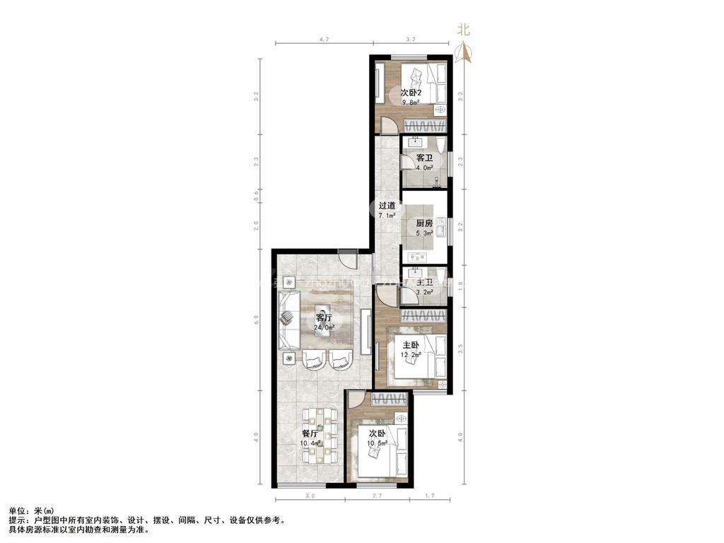 厅室3室2厅2卫1阳台