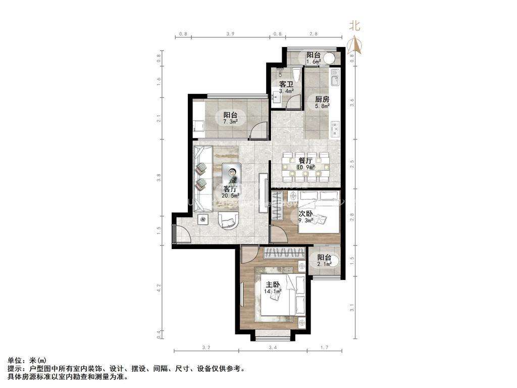 朝向南北 建筑面积99㎡