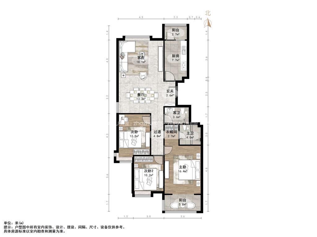 厅室3室2厅2卫1阳台