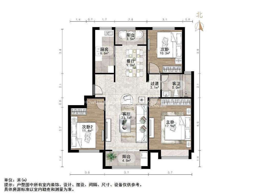 朝向南北 建筑面积120㎡