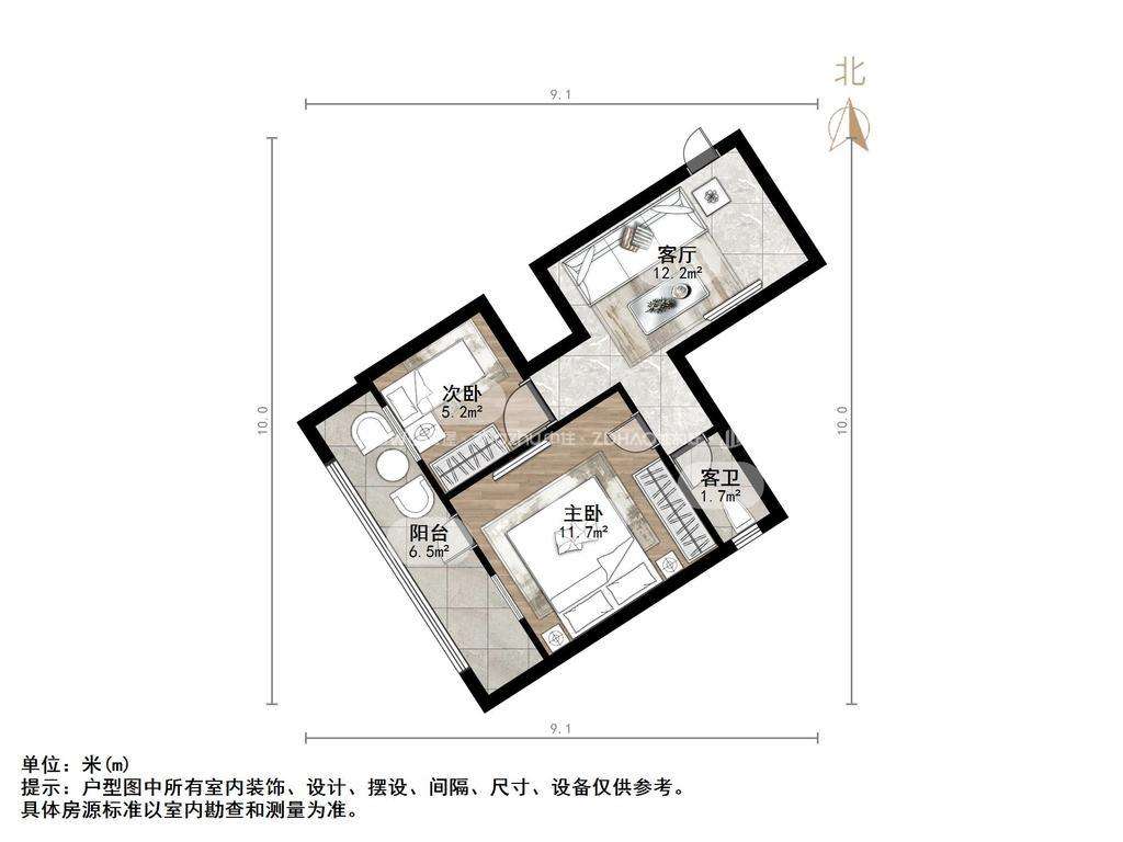 厅室2室1厅1卫1阳台