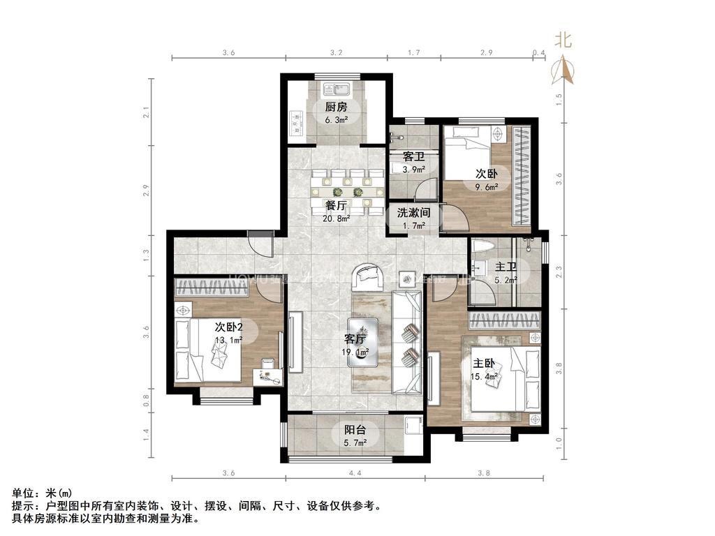 厅室3室2厅2卫1阳台