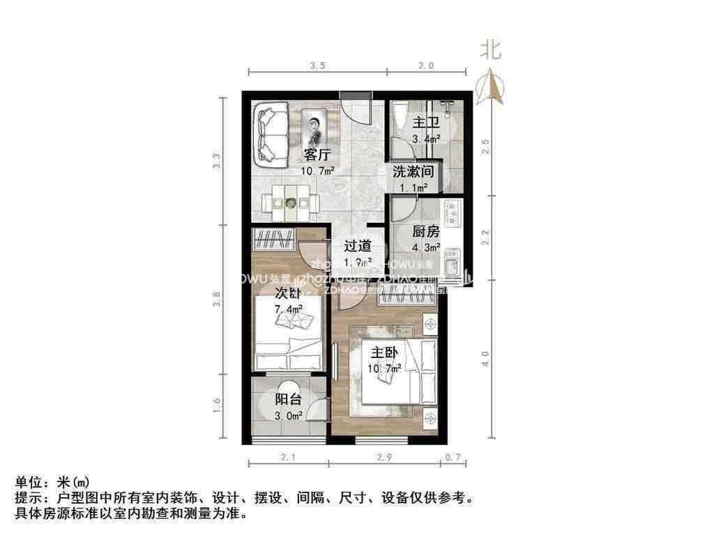 朝向南北 建筑面积60㎡