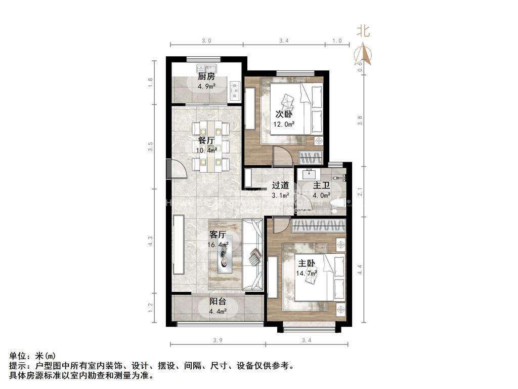 朝向南 建筑面积91.29㎡