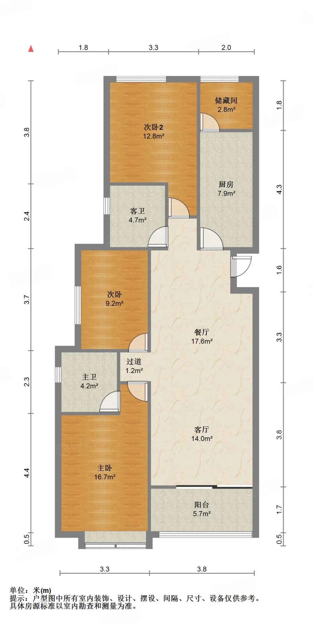 厅室3室2厅2卫1阳台