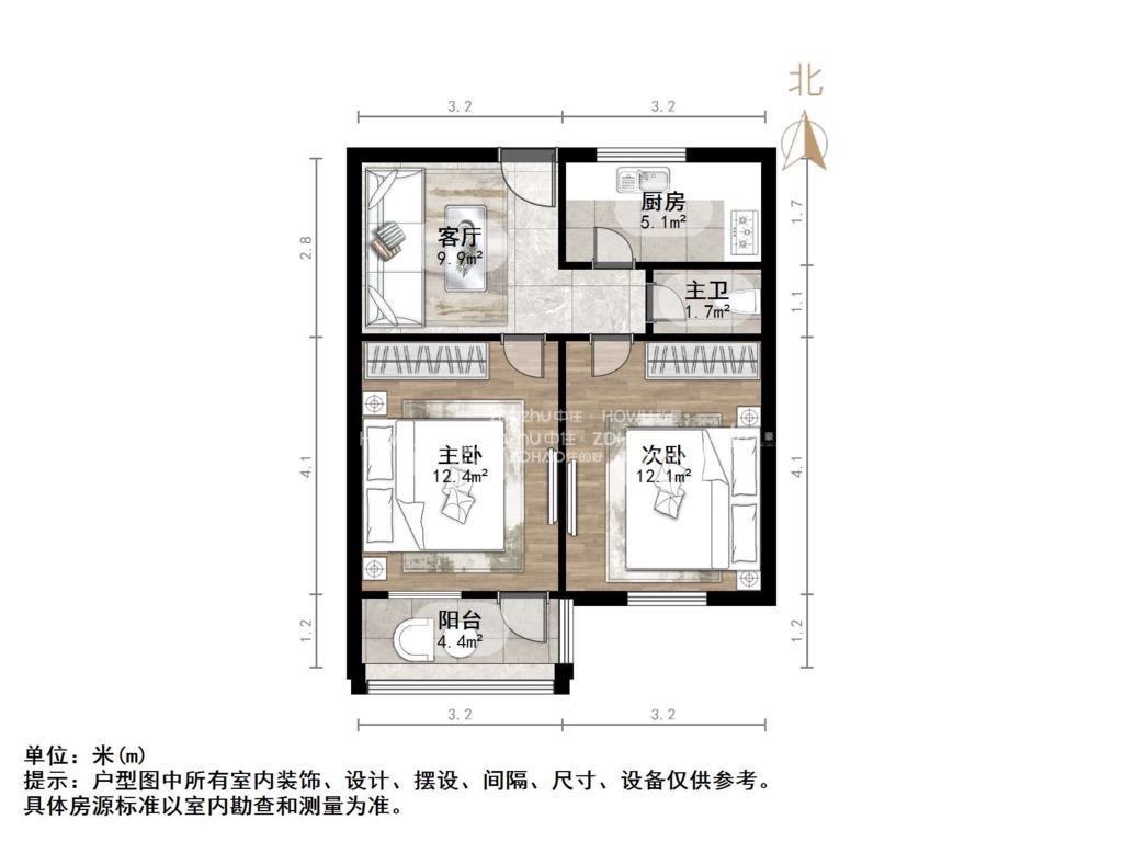 朝向南 建筑面积53.82㎡